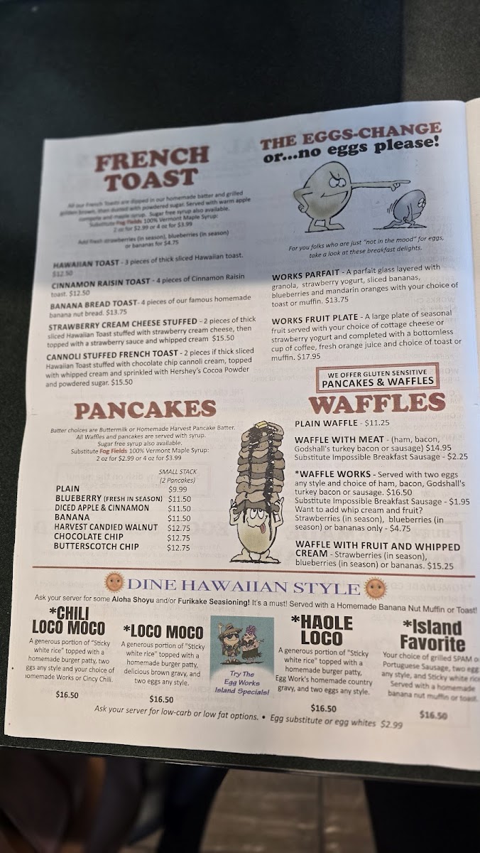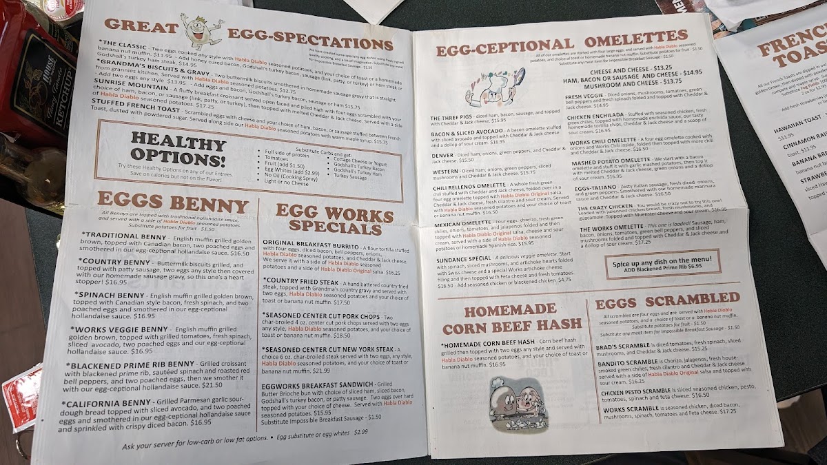 Welcome to Egg Works, a beloved breakfast and brunch destination located at 2025 Village Center Circle in Las Vegas. Known for its delightful atmosphere, highlighted by an electric toy train, Egg Works serves up a creative menu focused on one star ingredient: eggs. Whether you're craving the hearty Classic Benny or the flavorful Cabo Breakfast Burrito filled with homemade chorizo and fresh veggies, there’s something for everyone.